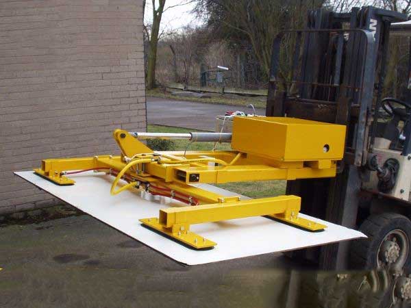 Fork Mounted Vacuum Lifting is a material handling solution that uses suction cups to lift and transport heavy loads using a forklift. The suction cups attach to the load and create a vacuum seal, allowing the load to be lifted and carried without the need for additional equipment or manpower.